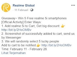| Pengumuman giveaway dari Realme Global di fb (Foto: Screenshot Realme Global) |